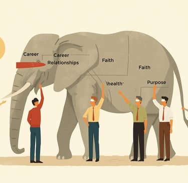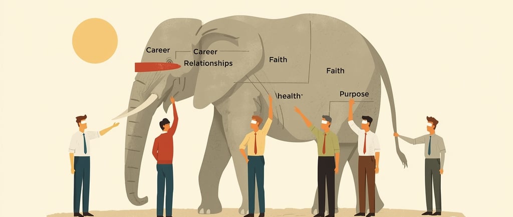 We may see only what is close to us — the “trunk” of success, the “ear” of comfort, the “tusk” of ambition — and yet, we wonder why life sometimes feels incomplete or disjointed.